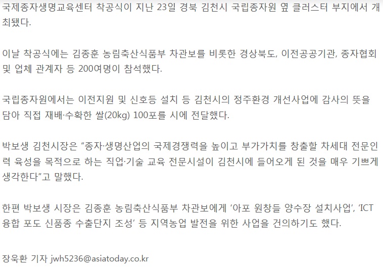 [아시아투데이]김천시, 국립종자원 국제종자생명교육센터 착공식 개최