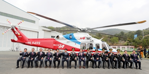 (부산=연합뉴스) 김재홍 기자 = 전국 최고령 헬기인 부산소방 1호의 임무를 대신할 신형 소방헬기가 10일 취항했다.