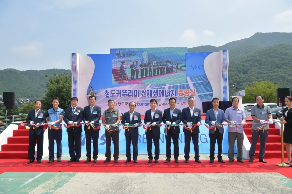 준공식에 참석한 이승율 청도군수는 축사에서 “날로 심각해져 가는 지구온난화에 대응하고 신재생에너지를 확대 보급하는데도 의미가 크며, 새로운 에너지시대에 대응하기 위한 좋은 사례”이라며 “두 회사가 상생발전을 통해서 기업발전은 물론 청도군민이 행복해 하는 희망청도 건설에 앞장서 달라”고 당부했다.