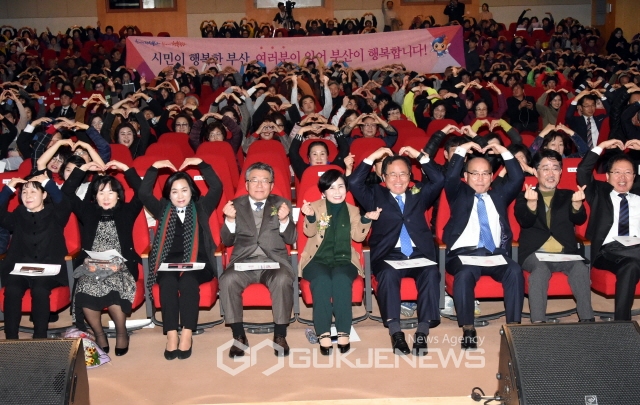 (부산=국제뉴스) 김옥빈 기자 = 김석준 부산시교육감이 6일 오후 2시 부산시청 1층 대강당에서 자원봉사자, 유관기관·단체 관계자 등 700여명이 참석한 가운데 열린 2018년 부산자원봉사자대회에서 자원봉사 프로그램 경진대회 입상자와 자원봉사 금배지 수상자들에게 시상을 한 후 축사를 하고 있다.