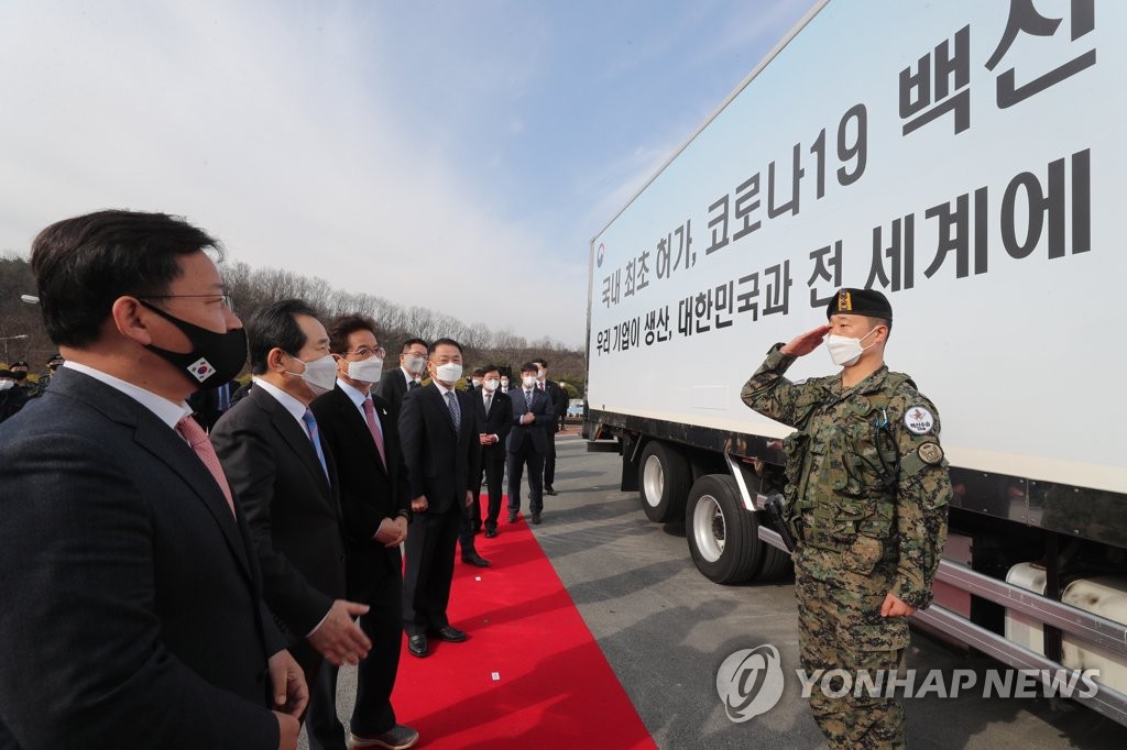 (서울=연합뉴스) 설승은 기자 = 신종 코로나바이러스 감염증(코로나19) 백신 접종을 이틀 앞둔 24일 국내 기업에 의해 생산된 아스트라제네카(AZ) 백신이 처음 출하됐다.